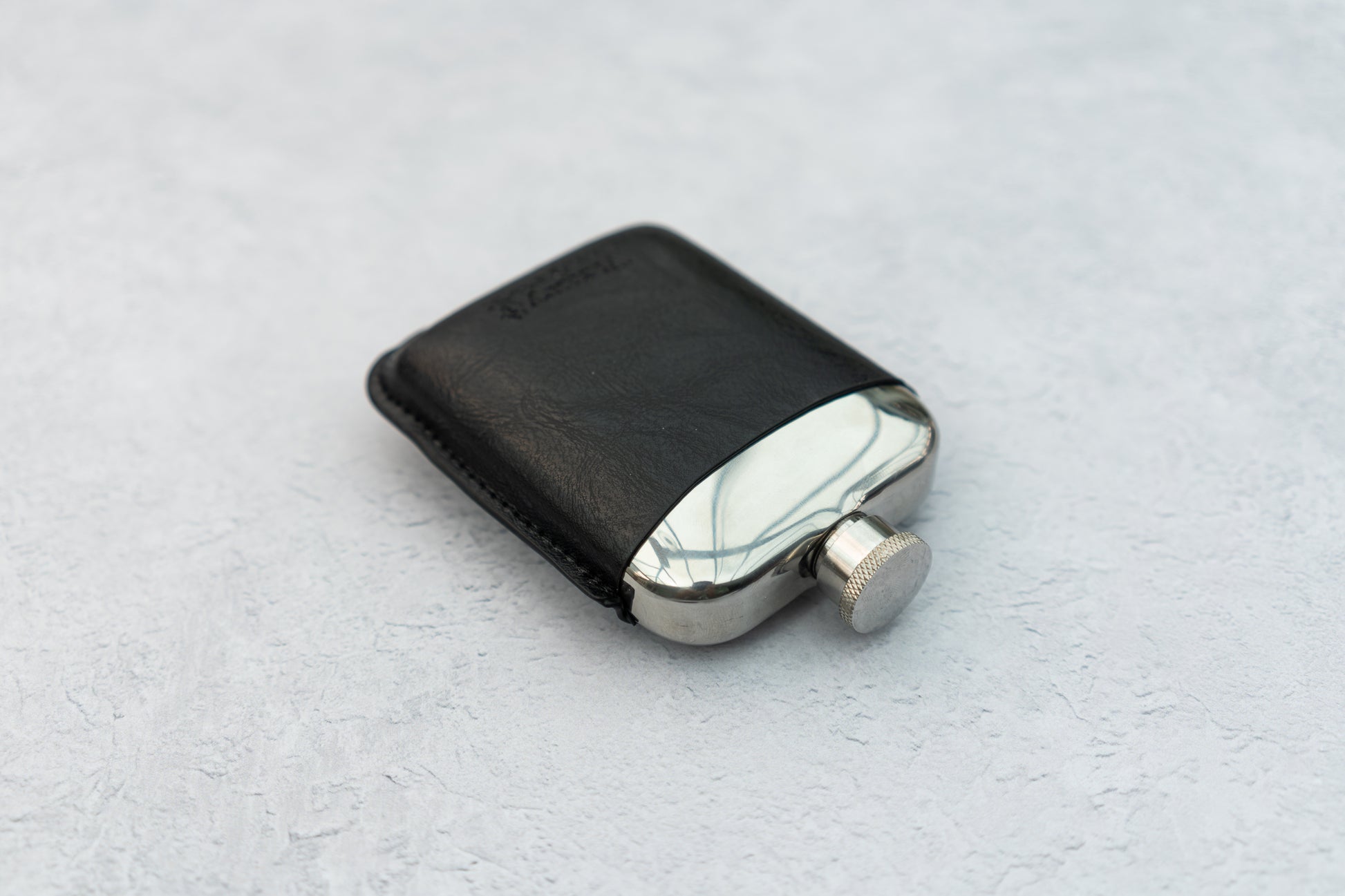 Leather Cased Hip Flask | Black Leather | 6oz Stainless Steel