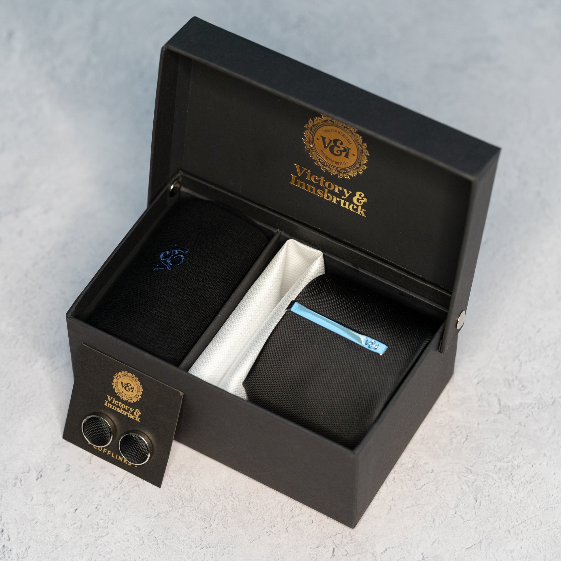 Elevate your suit game with Victory & Innsbruck. Our unique gift sets include a matching tie, tie bar, pocket square, cufflinks and socks. Inspired by British heritage, make a statement that exudes quality and sophistication.