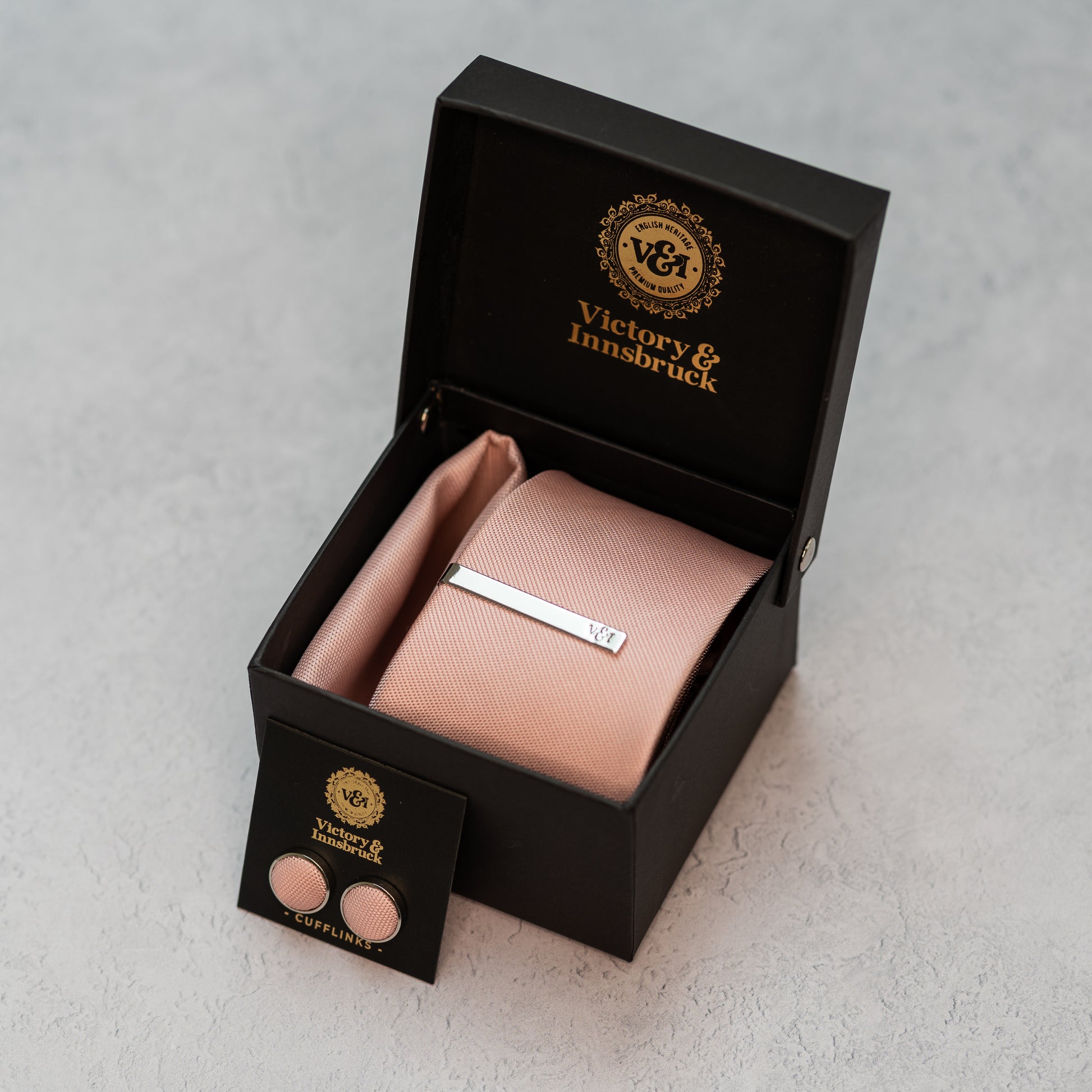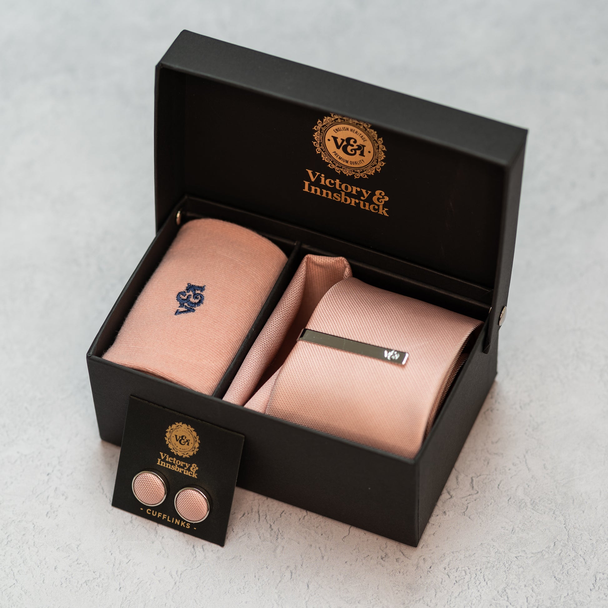 - Box Set (No Socks) - A smaller version of our full box set without the Socks. Includes Tie, Tie Bar, Pocket Square & Cufflinks.