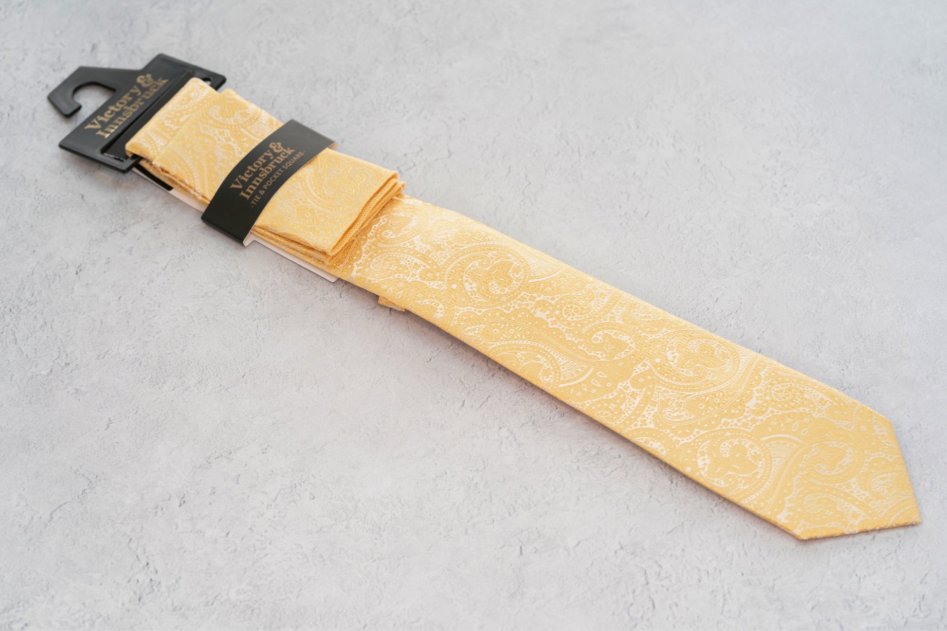 Our Boys Tie and Pocket Square comes on a card sleeve with hanger.