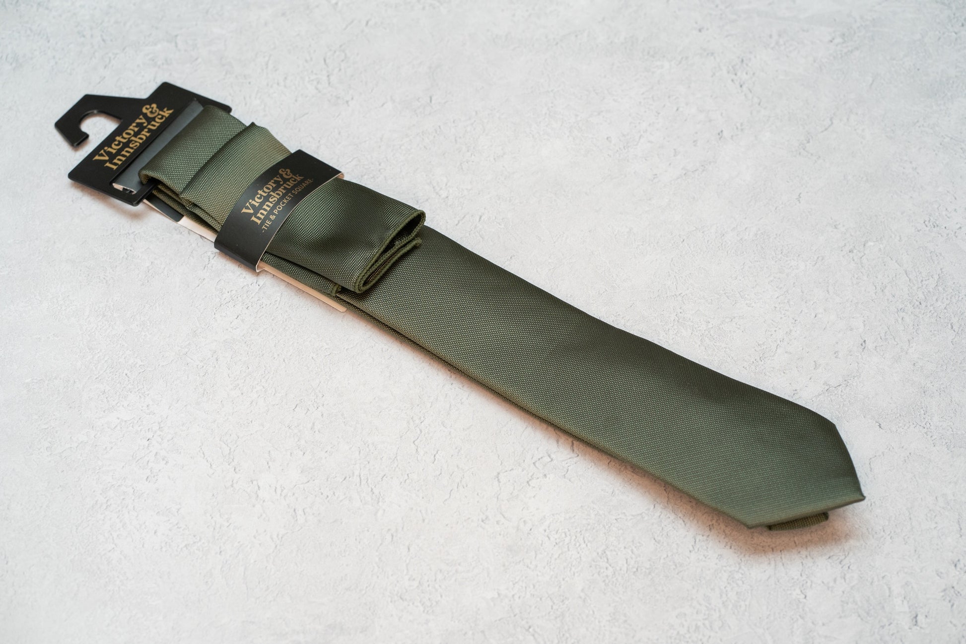BOY'S OLIVE GREEN TEXTURED TIE & POCKET SQUARE
