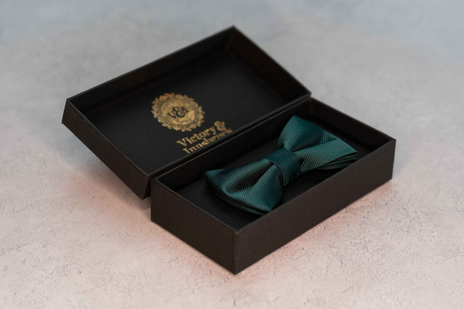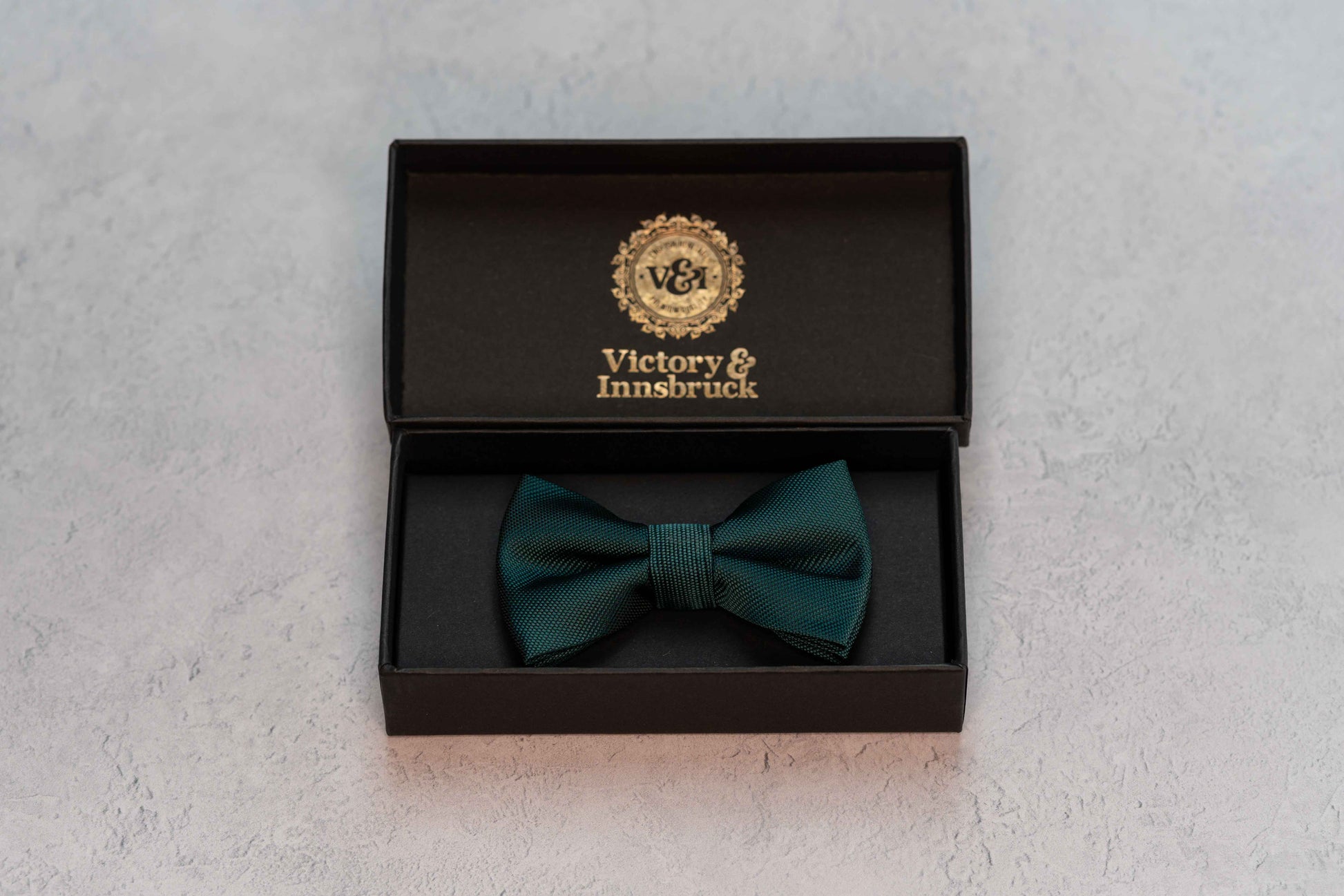 A textured finish Victory & Innsbruck bow tie in a peacock green colour. Ideal for any special occasion. Clip on fastening for ease and the guaranteed perfect finish.